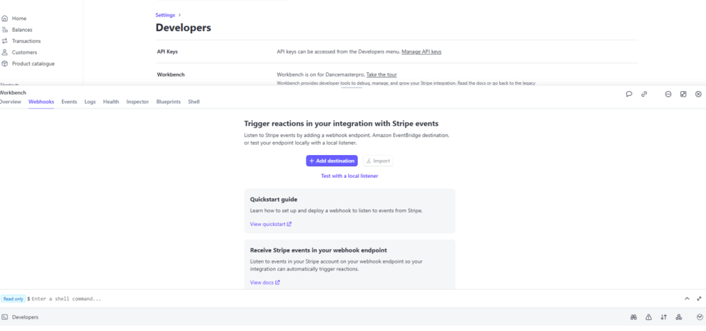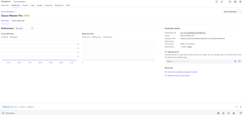 Webhook URL : https://customers.dancemasterpro.com/stripe/webhook