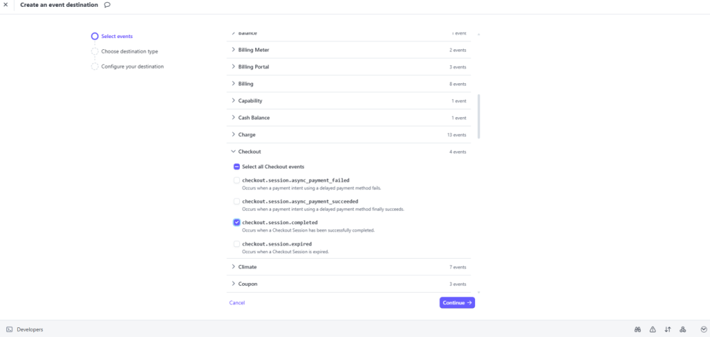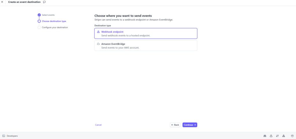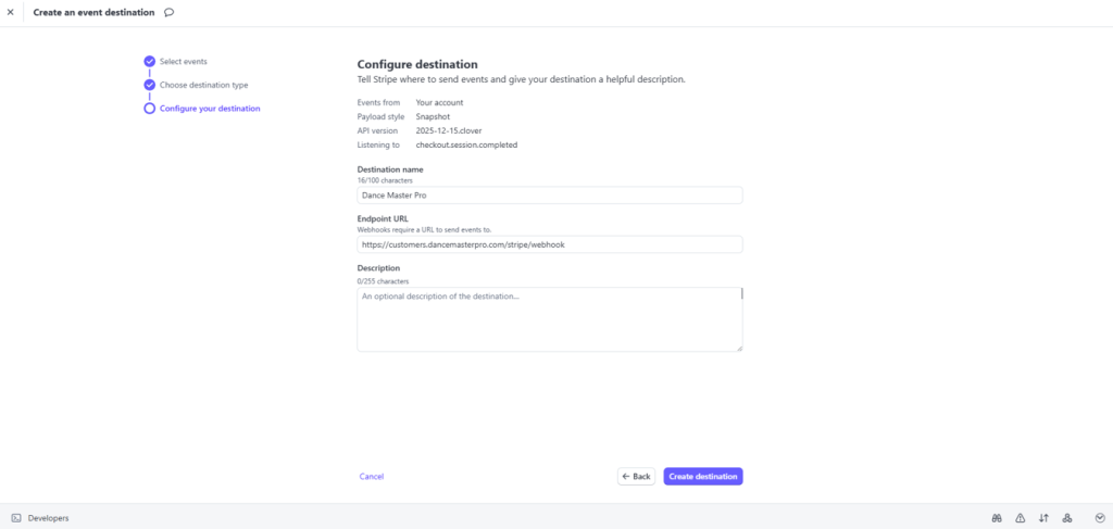 • Insert Endpoint URL: https://customers.dancemasterpro.com/stripe/webhook